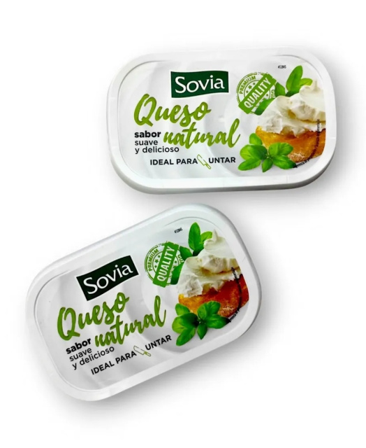 Це натуральний крем-сир Sovia Queso Natural високоякісний продукт, виготовлений з коров'ячого молока, який має ніжний вершковий смак і однорідну текстуру. Він ідеально підходить для бутербродів та інших кулінарних страв.