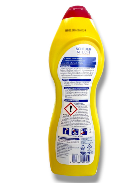 Gut & Günstig Scheuer Milch призначений для чищення та миття різних поверхонь у будинку, особливо на кухні та у ванній кімнаті. Ефективно видаляє жирні плями, вапняний наліт та залишки мила. Не дряпає поверхні. Залишає свіжий запах. Об'єм 750мл.